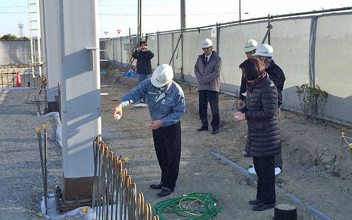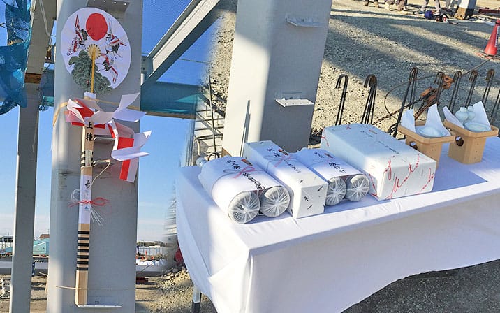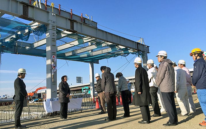 最後に弊社代表取締役の岩瀬より挨拶があり、ここまでの工事の労を労うとともに工事に関わる人一同と今後の工事の安全を祈願しました。