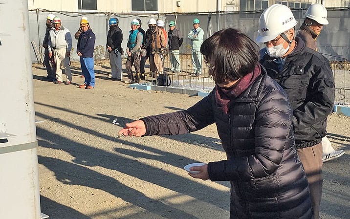 その後清めの儀式を行います。清めの儀式は建物の四方に酒・塩・米をまいて行います。